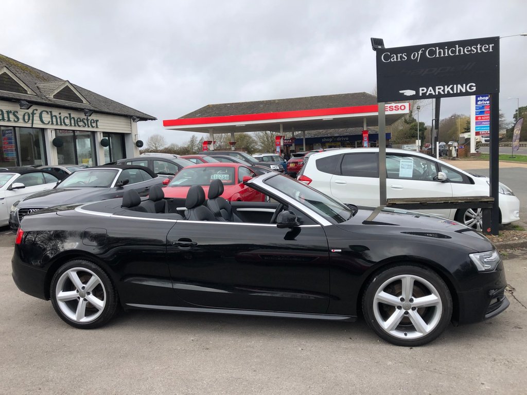 Here we have a 1 owner 2013 Audi A5 2.0 TDI Sline diesel 6 speed manual convertible featured in Black which has covered just 66,000 miles. Fantastic service history record recorded at 12,000, 21,000, 31,000, 45,000, 52,000 and 57,000 miles. Specification includes climate controlled airconditioning, full black leather Sline seats, autolights and wipers, electric windows, rear parking sensors, 18 inch alloy wheels, 6.5 inch multi-function display screen, radio+CD player+AUX connectivity, Bi-Xenon headlights, bluetooth phone, front centre armrest, trip computer, day time running lights, fully electric roof, fog lights, headlight washers and rear child isofix. Economical to run with £165 annual road tax and 57.6 mpg combined fuel consumption. In good condition for the age and mileage; drives well. Overall if you are looking for a low mileage 4 seater convertible with a good specification and service history this is well worth coming in to see. All of our cars come with a national parts and labour warranty for 6 months. We also offer finance through our website and a part exchange service. HPI checked and we do not charge admin fees. To find out more visit carsofchichester.co.uk or call us on 01243781111.