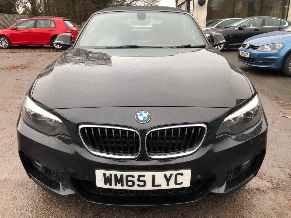 Here we have a desirable 2015 BMW 218D M SPORT convertible 6 speed manual diesel featured in Black Sapphire Metallic which has covered just 49,000 miles. Serviced at 10,000, 25,000, 33,000 and 39,000 miles. The car will come with a service and new mot for the next owner. Specification includes bluetooth phone and audio, front and rear parking sensors, 18 inch MSPORT alloy wheels, day time running lights, sport seats, airconditioning, speed limiter, DAB radio+CD, remote central locking with 2 keys, centre armrest, keyless start, electric heated door mirrors+electric windows, front fog lights, satnav, fully electric roof, autolights and rainsensing wipers and a multifunctional sport steering wheel. In good condition inside and out for the year; drives well. Overall if you are looking for an economical convertible with a good specification and low mileage this is well worth coming in to see. All of our cars come with a national parts and labour warranty. We also offer finance and a part exchange service. HPI checked and we do not charge admin fees. To find out more visit carsofchichester.co.uk or call us on 01243781111.