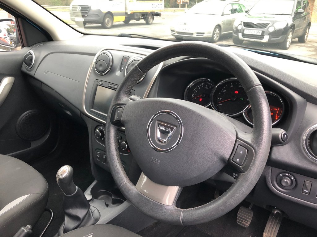 **JUST ARRIVED AWAITING A VALET** Here we have a popular Dacia Sandero Stepway LAUREATE 0.9 TCE which has covered 64,000 miles. Fantastic Service history record at the following intervals 5,000, 9,000, 14,000, 19,000, 26,000, 31,000, 37,000, 41,000, 48,000, 49,000 and 59,000 miles. Specification includes air conditioning, rear parking sensors, electric front and rear windows, and a 7-inch touchscreen with navigation, trip computer, bluetooth, remote central locking with 2 keys, radio +USB+Aux connectivity and electric mirrors. Economical to run with the 0.9 TCE chain driven petrol engine with £165 annual road tax and 52 mpg combined fuel consumption. All of our cars come with a 6 month parts and labour warranty. We also offer finance and a part exchange service. HPI checked and we do not charge admin fees. To find out more visit carsofchichester.co.uk or call us on 01243781111.