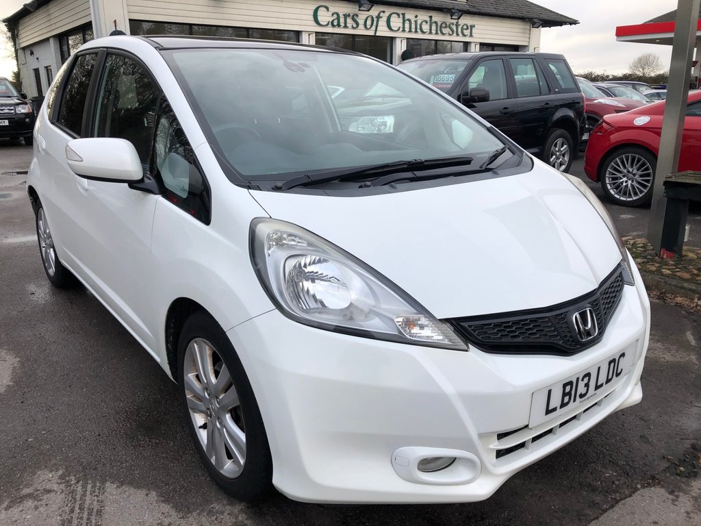 Here we have a well specified mid 2013 Honda Jazz 1.4 I-vtec petrol manual EX 5 door hatchback which has covered just 54,000 miles. Fantastic service history recored at the following intervals 900,1,000, 2,000, 10,000, 27,000, 30,000, 35,000, 44,000, 52,000 and 54,000 miles. Specification includes radio CD+USB+AUX connectivity, airconditioning, bluetooth phone, remote central locking with 2 keys, Honda Magic seats, trip computer, cruise control, electric folding mirrors, 16 inch alloy wheels, electric windows front and rear, front fog lights, glass panoramic roof, rear child isofix, autolights and rainsensing wipers, privacy glass. In good condition inside and out; drives well. Overall if you are looking for a practical 5 door petrol ULEZ compliant hatchback with a good specification and comprehensive service history this is well worth coming in to see. All of our cars come with a national 6 month parts and labour warranty. We also offer finance and a part exchange service. HPI checked and we do not charge admin fees. To find out more visit carsofchichester.co.uk or call us on 01243781111.