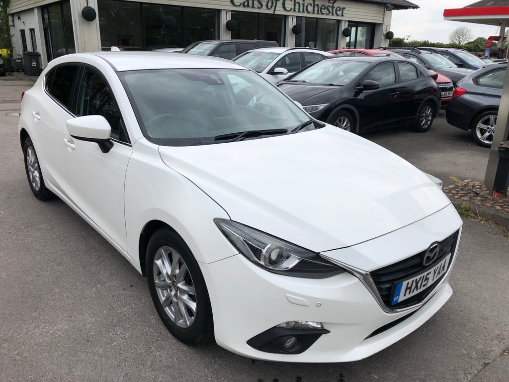 Popular 1 owner 2015 Mazda 3 2.0 SE-L petrol 6 speed manual 5 door hatchback with just 42,000 miles. Generous specification which includes 16 inch alloy wheels, electric folding mirrors, front heated seats, bluetooth phone and audio, front and rear parking sensors, headlamp washers, cruise control with speed limiter, radio CD, SatNav, climate controlled airconditioning, fog lights, electirc windows front and rear, autolights/rain sensing wipers, leather multifunctional steering wheel, remote central locking with 2 keys. Economical to run with just £35 annual road tax, 55.3 mpg combined fuel consumption and being ULEZ compliant. In good condition inside and out; drives well. Overall if you are looking for a well specified low mileage petrol hatchback this is well worth coming in to see. All of our cars come with a national parts and labour warranty for 6 months. We also offer finance and a part exchange service. HPI checked and we do not charge admin fees. To find out more visit carsofchichester.co.uk or call us on 01243781111.