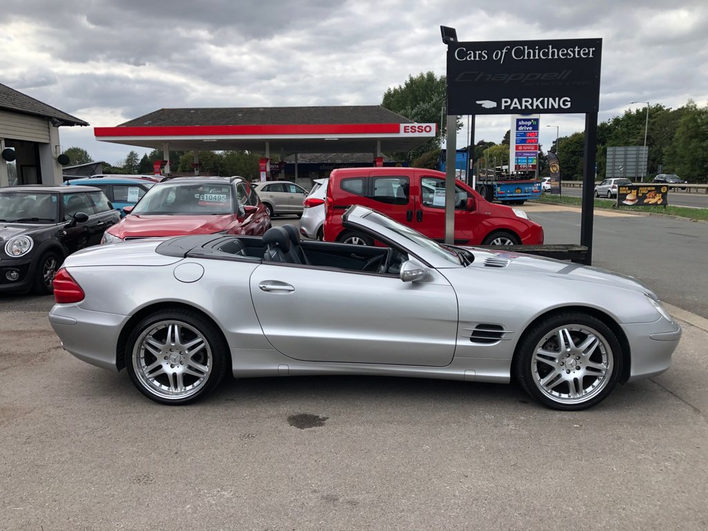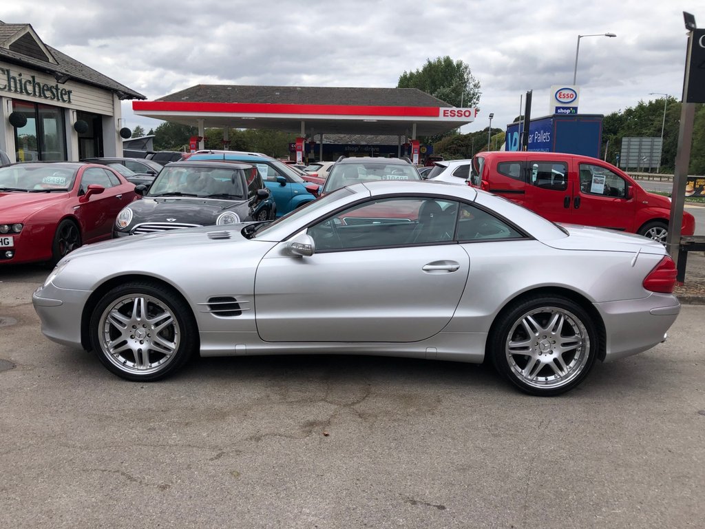 Here we have a 2003 Mercedes SL500 V8 automatic petrol convertible featured in Brilliant Silver Metallic which has covered 87,000 miles. Serviced at 11,000, 23,000, 40,000, 50,000, 59,000, 67,000, 76,000, 81,000 and 85,000 the majority being with a Mercedes main dealers. Specification includes Satnav, heatged electric seats, BOSE sound system, full grey leather, 6CD changer, front fog lights, centre armrest, cruise control, speed limiter, folding mirrors, fully electric roof, headlamp washers, remote central locking with 2 keys. In good condition inside and out; drives well. All of our cars come with a national parts and labour warranty. We also offer finance and a part exchange service. HPI checked and we do not charge admin fees. To find out more visit carsofchichester.co.uk or call us on 01243781111.