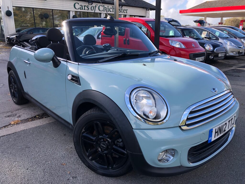 Here we have a highly requested 2012 Mini One 1.6 Convertible petrol manual featured in desirable Ice Blue which has covered just 56,000 miles. Serviced at 5,000, 8,000, 12,000, 17,000, 28,000, 40,000 and 52,000 miles. Specification includes PEPPER Pack, black 16" 6-Star Twin Spoke Light Alloy Wheels, Bluetooth with USB Audio, radio CD, Piano Black interior, White Indicators, airconditioning, electric mirrors+windows, fully electric roof, remote central locking with 2 keys. In good condition inside and out. All of our cars come with a 6 months parts and labour warranty. We also offer finance and a part exchange service. HPI checked and we do not charge admin fees. To find out more visit carsofchichester.co.uk or call us on 01243781111.